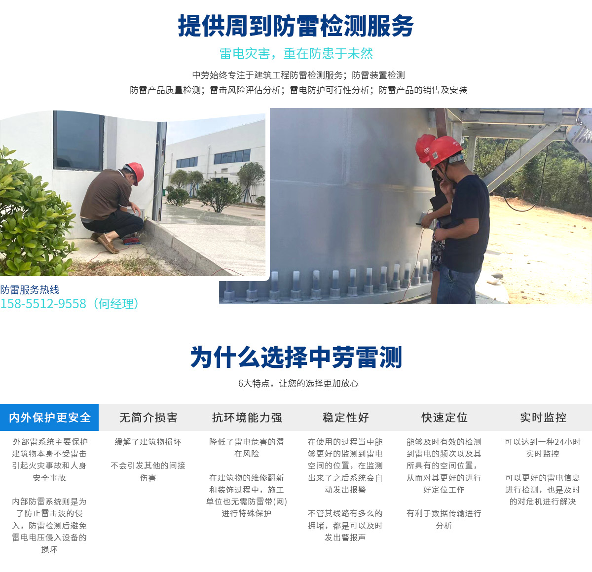 安徽中勞雷測檢測技術(shù)有限公司是一家主要從事防雷裝置檢測、防雷工程施工、防雷產(chǎn)品銷售及安裝,雷擊風(fēng)險(xiǎn)評(píng)估等工作的公司。 為提供周到的技術(shù)服務(wù),公司先后置辦了200多平方米的辦公場所;配備了防雷接地電阻測試儀、防雷元件測試儀、土壤電阻率測試儀、環(huán)路電阻測試儀等一批國內(nèi)外先進(jìn)的檢測設(shè)備。 公司營業(yè)范圍:建筑工程防雷檢測服務(wù);防雷裝置檢測;防雷產(chǎn)品質(zhì)量檢測;雷擊風(fēng)險(xiǎn)評(píng)估分析;雷電防護(hù)可行性分析;防雷產(chǎn)品的...